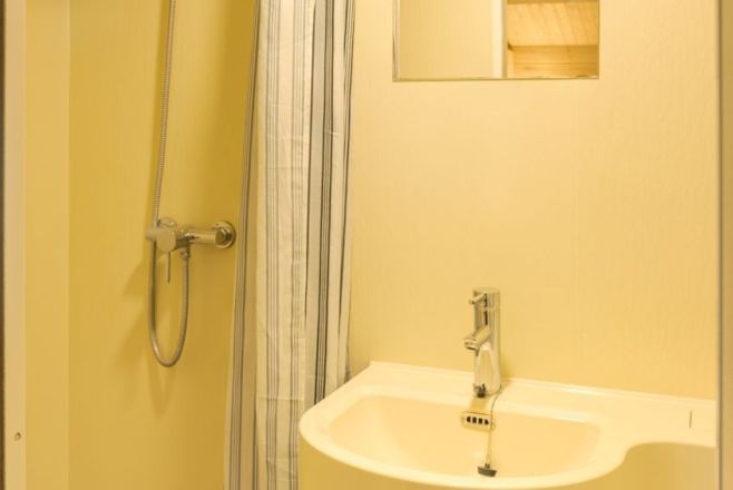 Basic: 2 persoons bed met matras, stopcontacten, verlichting en een keukenblok met spoelbak, 2 pits inductie kookplaat en koelkast.
